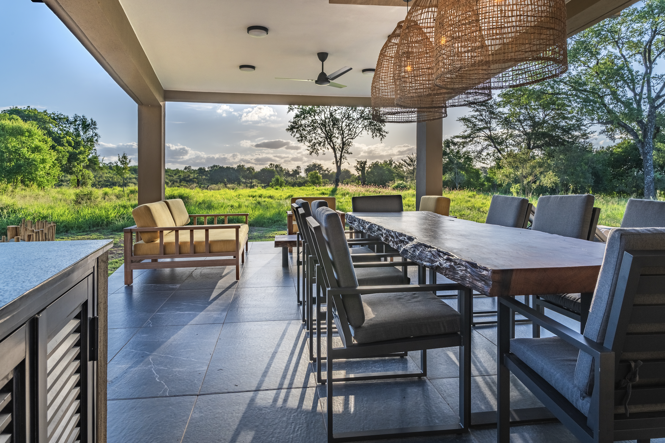 - The owner's own African wildlife photography throughout, framed in reclaimed wood