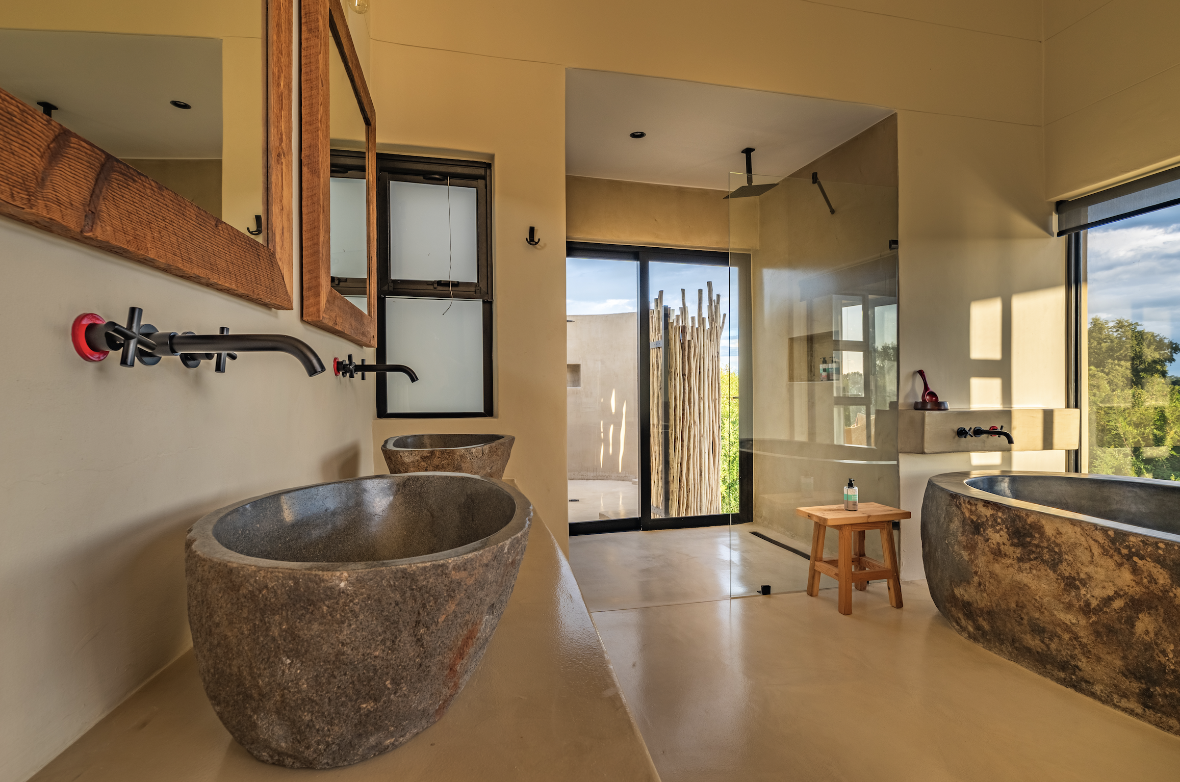 - Inside and outside showers in each bedroom